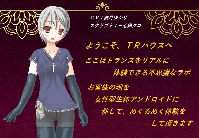内容は、お客様の魂を女性型生体アンドロイドに移して、「男性」又は「ふたなりサキュバス」とのセックスを楽しんで頂く設定となっています。